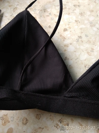 Sujetador triangular de algodón con tiras finas. Un diseño delicado y cómodo.